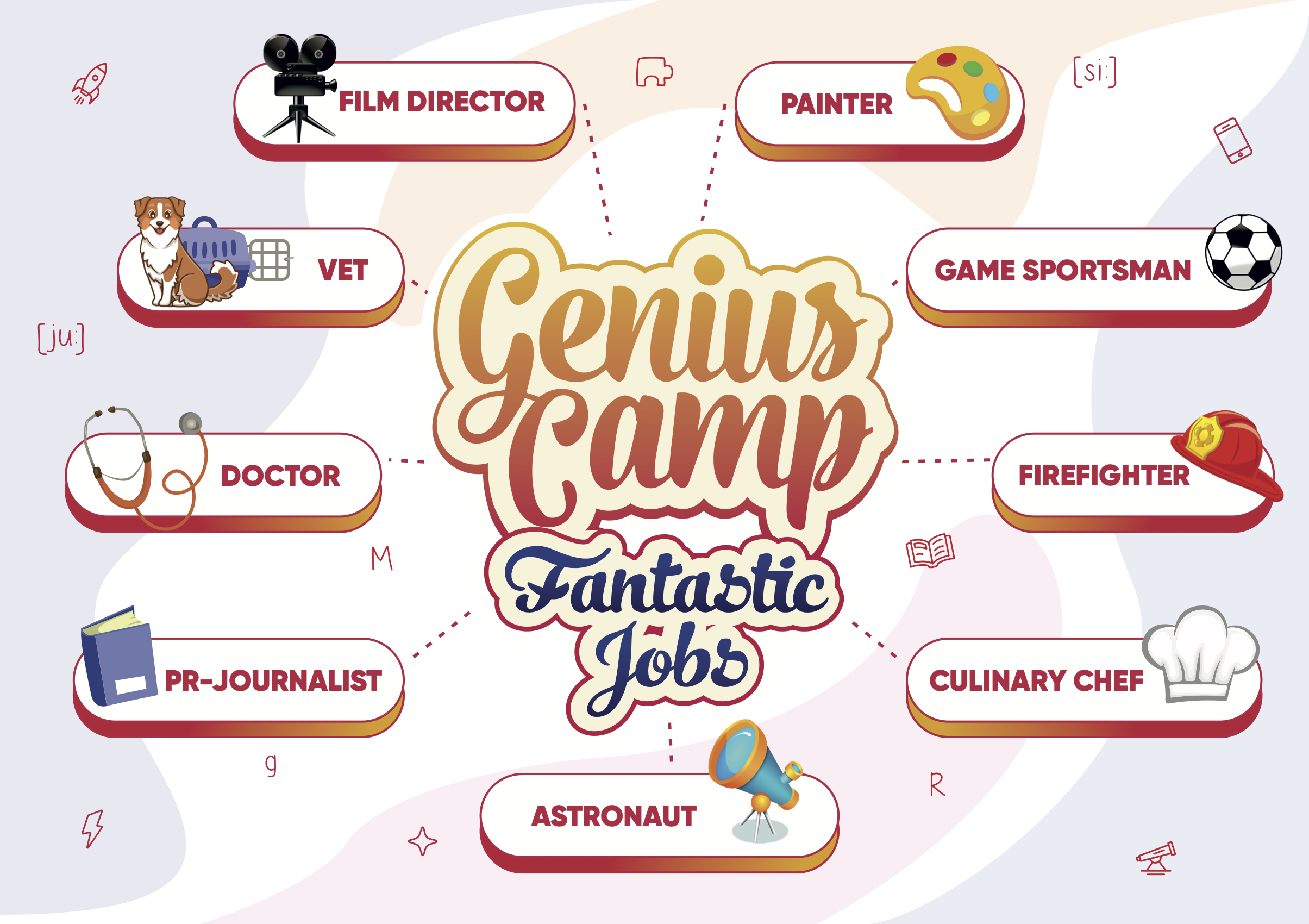 Genius Camp: Fantastic Jobs – это уникальная программа, которая обогатит кругозор детей и позволит им соприкоснуться с различными профессиями прошлого, настоящего и даже будущего!